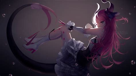 pink hair horns anime girl.